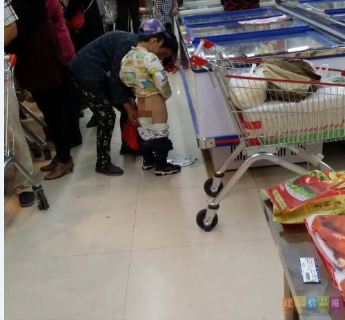 無獨有偶,下午又有熱心市民爆料稱,在某超市家長讓孩子隨地小便。熱心市民說:“孩子不懂事可以理解,可是家長這樣做合適嗎?在公共場所就不能講究點嗎?”
