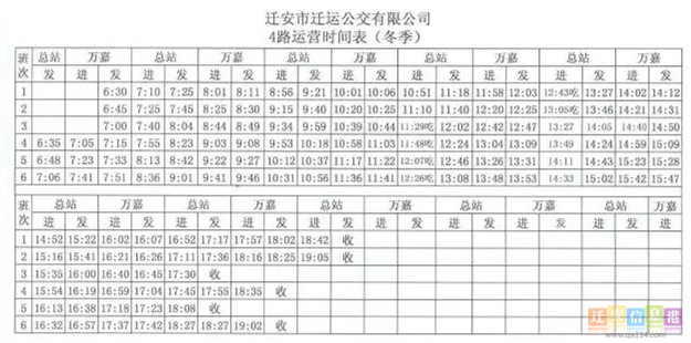 閱讀:7017遷安信息港消息:今日,小編從遷安市遷運(yùn)公交公司獲悉,自2016年10月5日起,公交車開始執(zhí)行冬季時(shí)刻表。執(zhí)行冬季時(shí)刻表后,市區(qū)多條路線末班車由現(xiàn)在的19:30調(diào)整為19:00發(fā)車;城鄉(xiāng)公交線路根據(jù)各線路運(yùn)行情況,也做出了相應(yīng)調(diào)整。在此提醒廣大乘客,如有出行計(jì)劃,可合理安排時(shí)間。