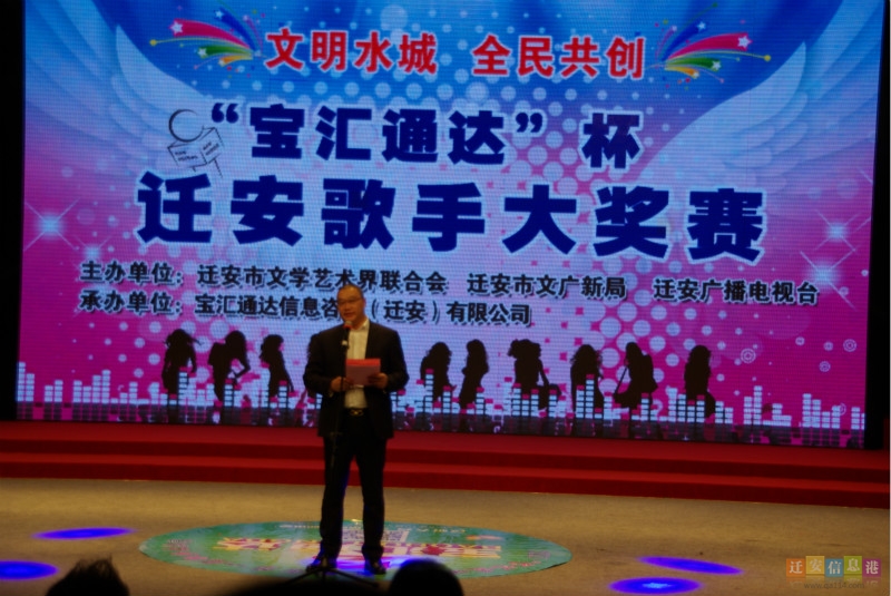 10月31日晚七點整,由遷安市文學藝術(shù)界聯(lián)合會、遷安市文廣新局和遷安廣播電視臺主辦,寶匯通達信息咨詢(遷安)有限公司承辦,活動得到了天祿商貿(mào)有限公司、愛戀珠寶、唐安老酒、翠林合作社、精功眼鏡等諸多商家的贊助支持的“寶匯通達”杯遷安歌手大獎賽決賽在精彩的水鼓表演中正式開賽,入選的12位選手各顯神通,為在場觀眾呈現(xiàn)了一場無與倫比的視聽盛宴,贏得了現(xiàn)場陣陣掌聲。