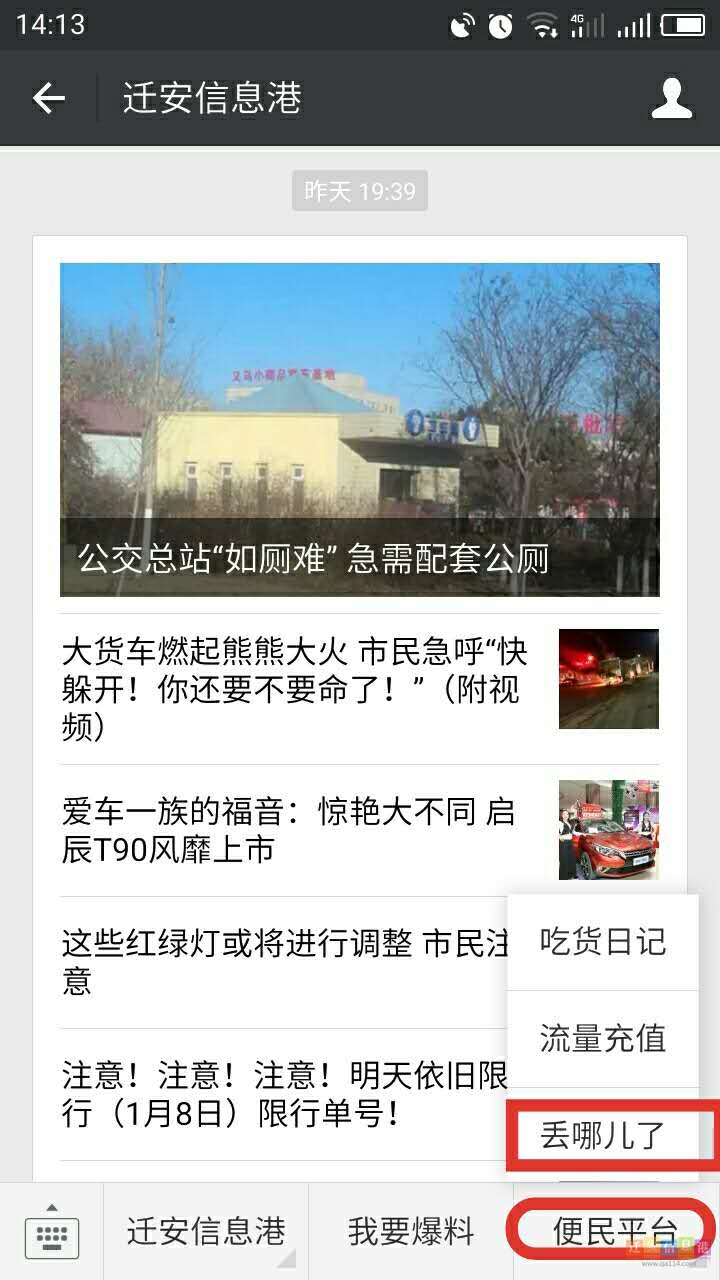 方法二:點擊遷安信息港右下角的“便民平臺”,在下拉菜單中選擇“丟哪兒了”系統(tǒng)