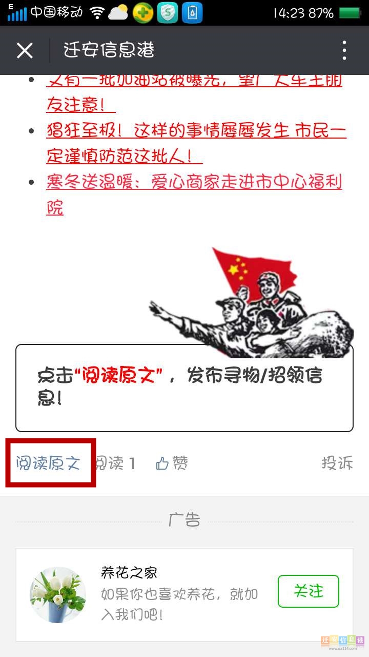 方法一:點擊信息港每篇文章中左下角的“閱讀原文”