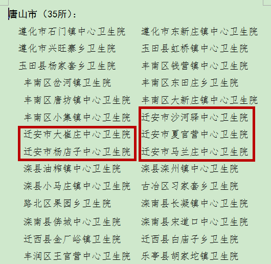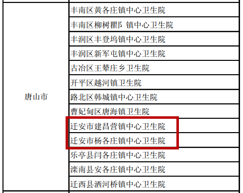 國家衛(wèi)計(jì)委“2015-2016年度群眾滿意的鄉(xiāng)鎮(zhèn)衛(wèi)生院”名單(唐山市)