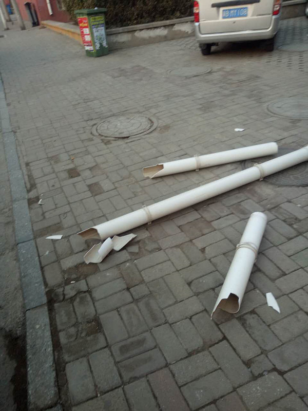 李女士稱,前兩日孩子住院了,所以她往來醫(yī)院時經(jīng)常路過福地小區(qū),平時也沒發(fā)生什么意外。不想2月27日下午4點左右,再一次路過福地小區(qū)時卻被樓房外側(cè)墜落的塑料管道砸到了,因為沒有防備,塑料管道重重地砸在了她的頭上?!皼]想到樓房上的管子能掉下來,當(dāng)時嚇我一跳,我在地上坐了好久才起來,到現(xiàn)在頭上還有三個包呢?!崩钆空f到。