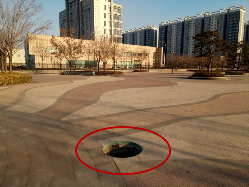 據(jù)熱心市民講述,此處的井蓋丟失已有一段時(shí)間,或因無人反映至今井口還裸露于地面。此處距燕鋼小區(qū)和君和廣場(chǎng)都比較近,隨著天氣轉(zhuǎn)暖,晚上到此散步和鍛煉的市民較多,但井口旁邊沒有任何警示標(biāo)志,讓人很難發(fā)現(xiàn)腳下的“陷阱”?!按笕诉€稍好點(diǎn),如果是孩子掉下去將相當(dāng)危險(xiǎn)?!睙嵝氖忻駬?dān)心到。