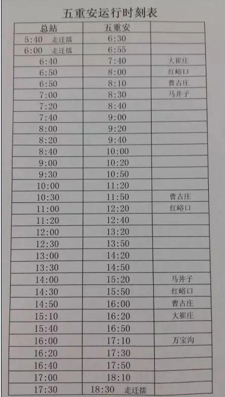 以下為五重安線路改為無人售票后發(fā)車時刻表: