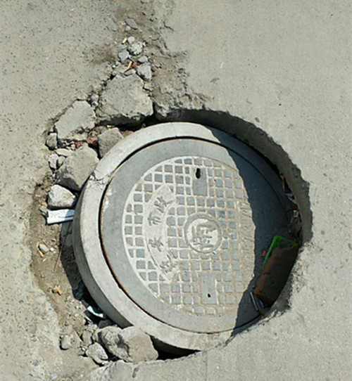 前三元街上損壞的井蓋