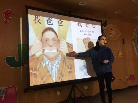 配圖1:閱讀推廣志愿者全老師分享繪本《我爸爸》