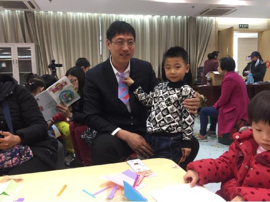 本次活動由閱讀推廣志愿者全雪云老師主講,幽默風趣的PPT展示、聲情并茂的童語講說,爸爸的豐富形象躍然呈現(xiàn),孩子們見識到面對大野狼鎮(zhèn)定自若的勇敢爸爸、像魚一樣游泳的靈活爸爸、像泰迪熊一樣安靜的溫柔爸爸,現(xiàn)場聽眾一起歡笑,一起沉思,一起感受爸爸那溫暖得像太陽一樣的愛。故事講述后,進行了手工制作環(huán)節(jié),孩子們?yōu)榘职衷O計了充滿童趣的領帶,一條條別具匠心的禮物在孩子手中誕生并親手為家長戴上,再次將活動主題升華。