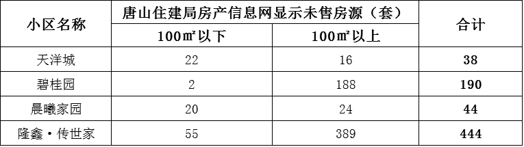 據(jù)唐山房產(chǎn)信息網(wǎng)提供的信息顯示:鋼城家園、星遠(yuǎn)·壹號(hào)公館、燕鋼麗景家園、天洋城等多個(gè)小區(qū)仍有未售房源,其中小編對市民較為關(guān)注的四個(gè)小區(qū)的未售房源信息進(jìn)行了整理,其中天洋城未售房源約38套,碧桂園未售房源約190套,晨曦家園未售房源約44套,隆鑫·傳世家未售房源約444套。現(xiàn)將詳情公布如下: