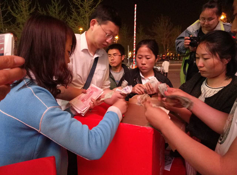 原定于7點(diǎn)結(jié)束的募捐活動(dòng),一直持續(xù)到晚上8點(diǎn),夜幕降臨,承德銀行遷安支行的工作人員開始統(tǒng)計(jì)捐款數(shù)量,但是仍不斷有愛心人士前來捐款。在此,遷安信息港及所有志愿者代表彭新航、鄭伊然對大家表示感謝!截至活動(dòng)結(jié)束時(shí),此次現(xiàn)場募捐已為彭新航、鄭伊然籌集善款2.6萬元。