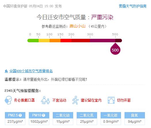 今日浮塵天氣籠罩遷安,請市民做好防護措施