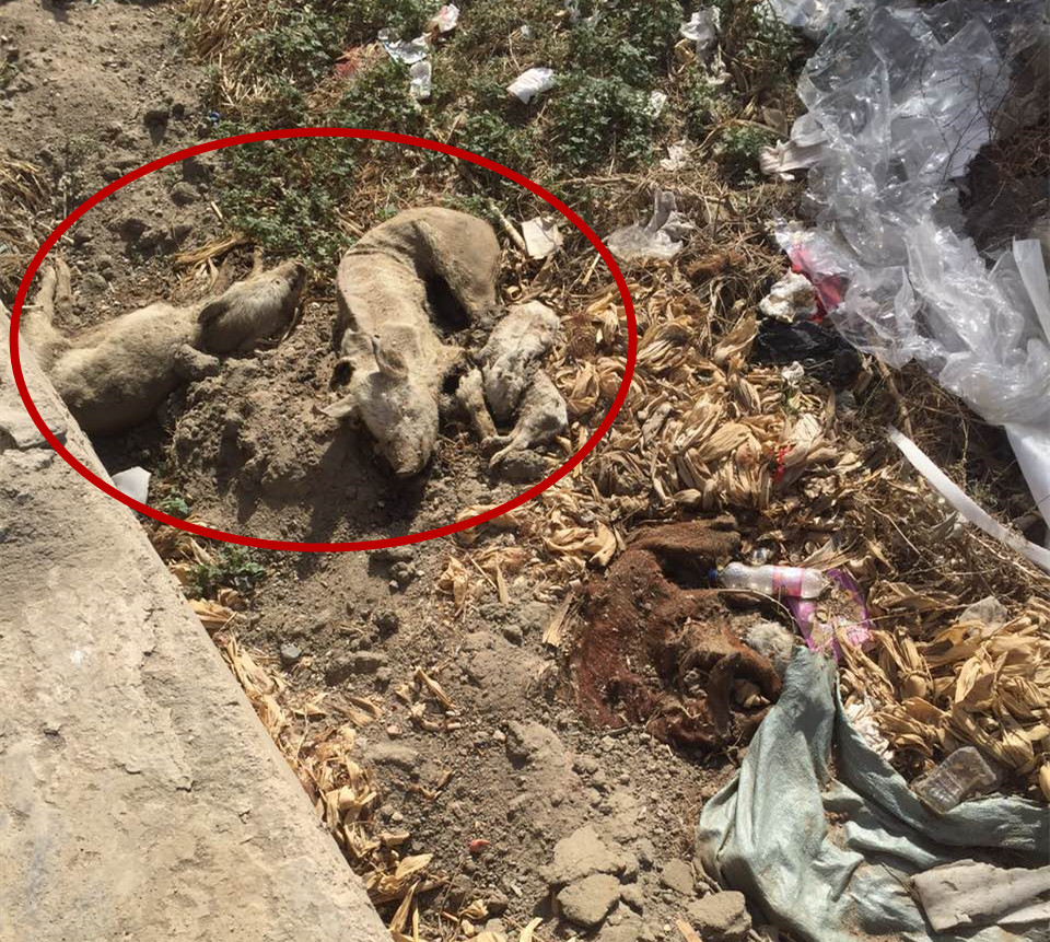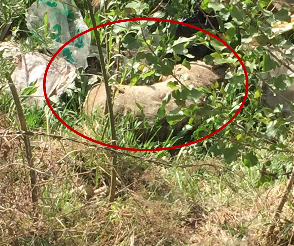 據(jù)武先生講述,在扣莊北和西曬甲山村南處有一堆垃圾,垃圾中還清晰看到一些死豬的身影,“一個(gè)多月前就有死豬了,大約有十幾頭,當(dāng)時(shí)天氣不像現(xiàn)在這么熱,所以聞不到臭味”,隨著天氣轉(zhuǎn)暖,加上今天風(fēng)力較大,武先生內(nèi)心擔(dān)憂,“死豬已經(jīng)腐爛,有濃烈的臭味,而且今天風(fēng)力很大,如果產(chǎn)生病菌,會吹得哪兒都是”。