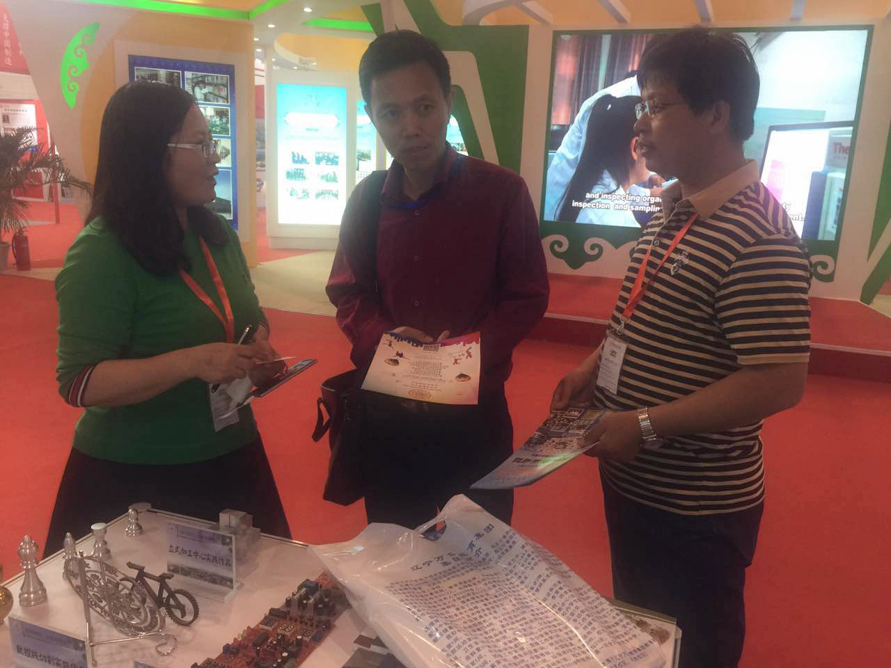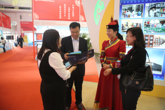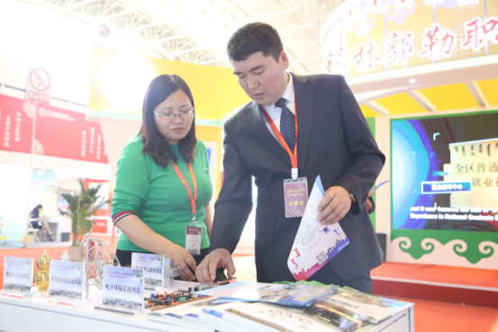 凌志杰校長在展會上與錫林郭勒職業(yè)技術(shù)學院教師交流
