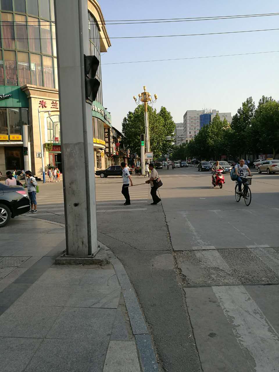 據(jù)李女士講述,5月26日下午,她去三實(shí)小接孩子,途經(jīng)燕山大路和花園街路口時(shí),看到一名穿制服的城管小哥正扶著一位盲人過馬路,李女士用手機(jī)記錄了這一幕。