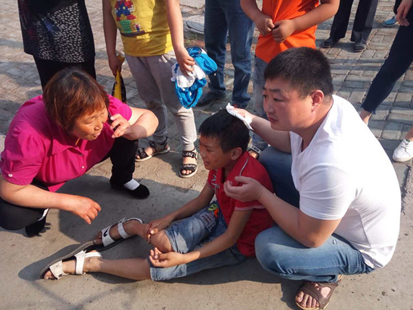 端午佳節(jié),讓孩子有了自由的時(shí)間。今日下午,在花園小區(qū)15號(hào)樓南側(cè),不知是由于路面不平,還是被地面上的繩子絆到,男孩摔倒在地,頸部被繩子拴住,頭部受傷,流血不止,男孩痛苦出哭。此時(shí),在此經(jīng)過的幾位路人主動(dòng)走上前,紛紛伸出援手,救助受傷的小男孩,讓恰巧看到這一幕的賈先生深感溫暖。
