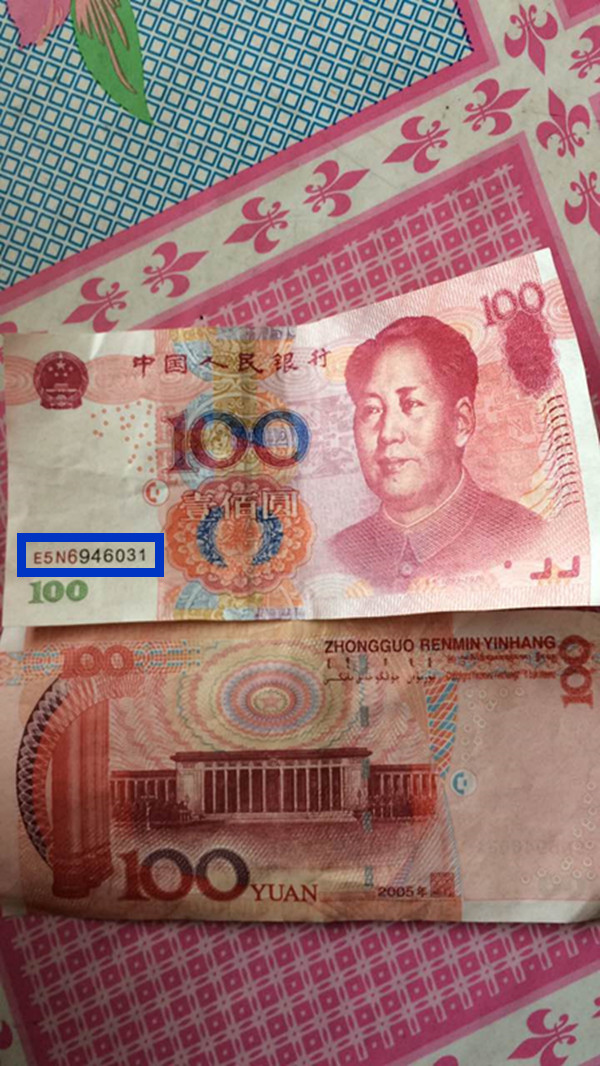 宋先生稱,當時還有一男子來到攤前,買走11元香瓜,同樣拿出一張100元和一張1元紙幣?!爱敃r人也比較多,我也沒注意,等我去跟別人換零錢的時候才發(fā)現(xiàn),兩張一百的紙幣都是假錢”,宋先生稱,認真一看,兩張100元紙幣左下角的號碼竟然同為“E5N6946031”。