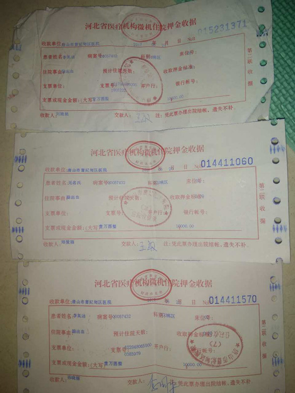 李英潔的部分治療收據(jù)
