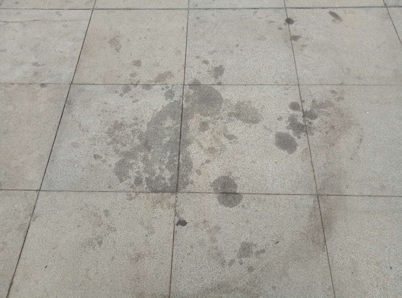 接到市民爆料后,小編立即趕往軒轅閣,發(fā)現(xiàn)地上的垃圾已被保潔人員清理,但還留有油污。據(jù)黃臺(tái)山保潔人員講述,早上發(fā)現(xiàn)這里有垃圾后,他們就及時(shí)清理了,但地上的油污卻怎么也清洗不干凈?!拔覀円呀?jīng)用洗滌靈和鋼絲球擦了好幾遍了,可是油污還是不能清除”保潔人員無奈地說。