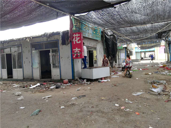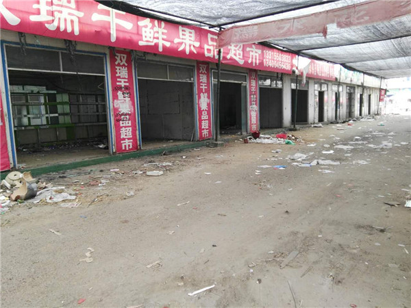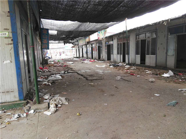 蔬菜大廳內(nèi)大部分商戶已搬離,僅剩下零星的幾家商戶在店鋪里做著最后的整理工作。放眼望去,原本熱鬧的店鋪門口如今只剩下遍地的垃圾和廢棄物。