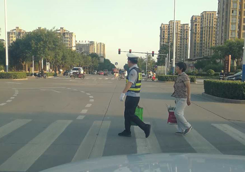 據(jù)楊先生講述,這一幕發(fā)生在鋼城大街和阜安大路交叉口,當(dāng)時(shí)他正在路口等紅綠燈,此時(shí),一名身著警服的交警看到一位行人一手提菜,一手提包,就走到她身邊,接過(guò)行人手里的重物,并引導(dǎo)行人走過(guò)斑馬線,走到馬路的對(duì)面?!靶盘?hào)燈變成綠燈后,我就開(kāi)車離開(kāi)了”楊先生說(shuō),雖然很遺憾,沒(méi)有看到接下來(lái)的畫(huà)面,但這名交警幫行人提重物,護(hù)送行人過(guò)馬路的畫(huà)面讓他很是感動(dòng)。