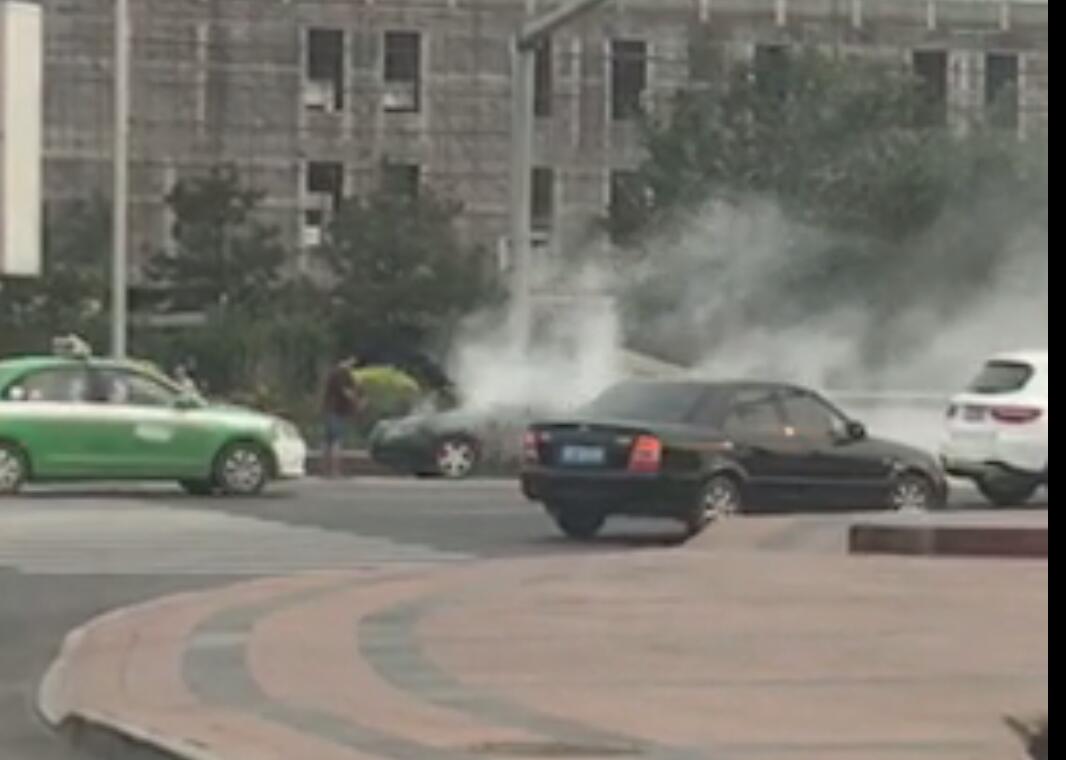 從市民提供的視頻中可以看到,在鋼城大橋十字路口處,一輛黑色轎車引擎蓋冒出濃煙并有明火燃燒,車上人員在起火車旁正在撥打電話。而從另一段網友提供的視頻中可以看到,雖然事故車輛依然濃煙滾滾,但明火已被撲滅。目前事故原因和損傷情況尚不明確。